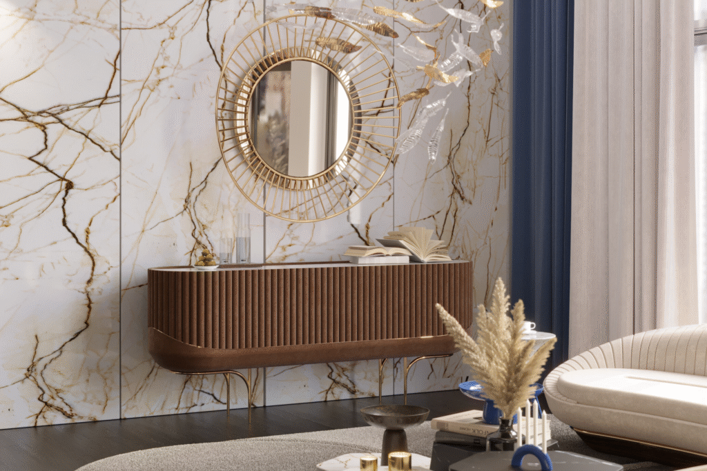 A little bit of shimmer can go a long way. Use gold, brass, or bronze accents in your décor—whether it’s through mirror frames, candle holders, or cabinet handles. Metallic details reflect light beautifully and make any space feel more opulent.